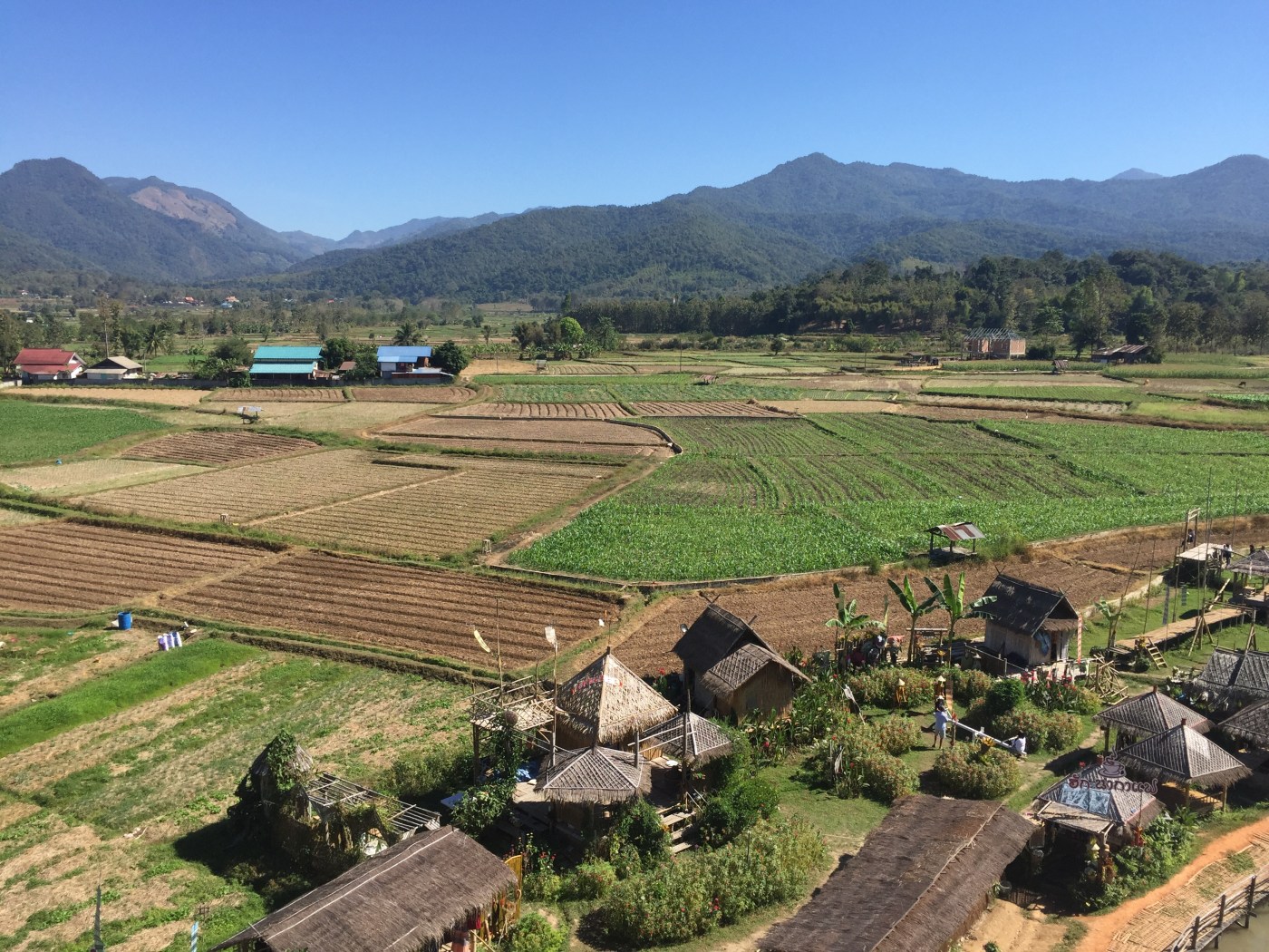 The sun was just beginning to set when we arrived at the empty yellow house that our group of foreigner and Thai friends would be filling for the night. Well, not really us, as Gonzague and Daniel shared a tent on the second floor while Sofia and I shared the neighbouring tent with Arianna. Upon our arrival to the summer-y home, we met Arianna, a lively woman who recently graduated from Harvard. This amazing display of her intelligence instantly left myself and Sofia blown away, but we were even more blindsided by her seemingly instant friendship and kindness. She instantly became a member of our rather small girls’ club, as all the other foreigners on the trip were men. We did introductions, though Sof already knew Arianna fairly well as Arianna teaches at Daniel’s school, where Sofia and Gonzague regularly volunteer. We then wasted no time on small talk before bounding into the open field of sunflowers and crops that surrounded our accommodation. We trampled on a shaky wooden bridge that connected the viewpoints, one being a flagpole in the middle of the field and the other being a tower overlooking the mountains.