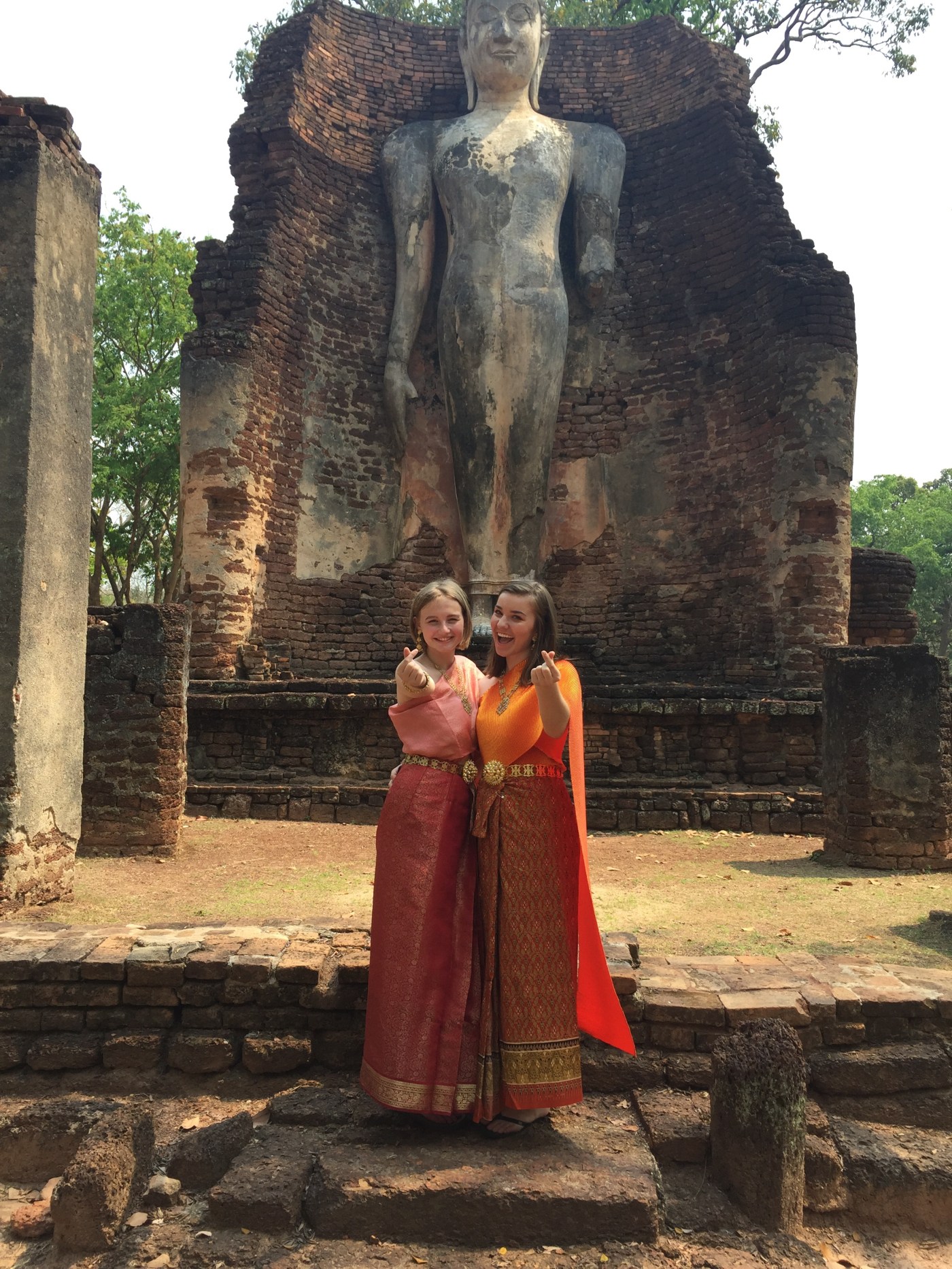 Teacher Suporn, Kru Nok, and some other teachers took us, in Thai traditional dress, to the Kamphaengphet Historical Park on Sydney’s first day of school. We explored the ruins and took lots of photos.